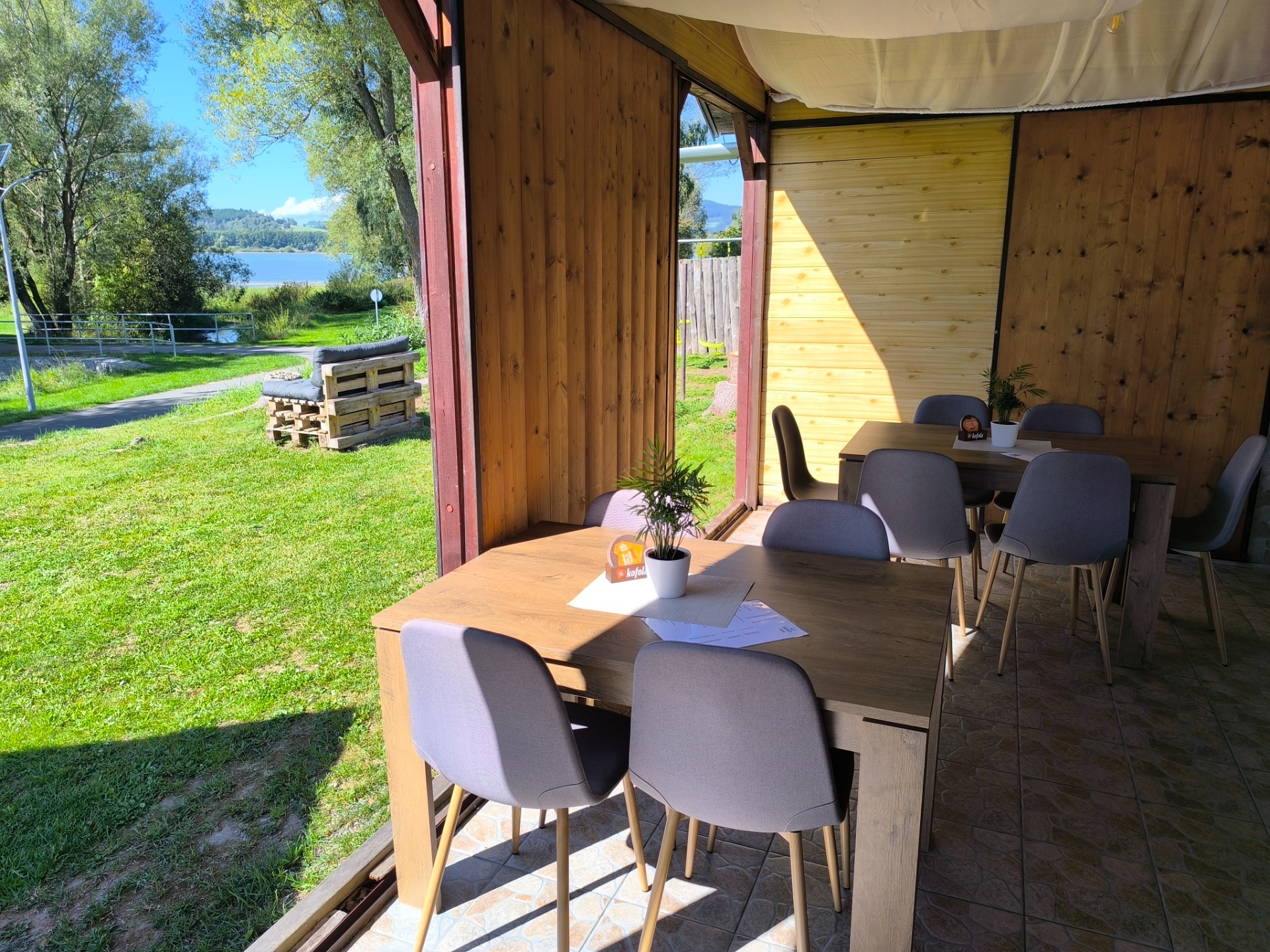 V naší útulné zahradní restauraci načerpáte nejenom fyzické síly ale s výhledem na vodní hladinu jezera Lipna i duševní klid. Pro malé hosty je připraveno hřiště, skluzavka, houpačky a další. Díky posuvným stěnám restaurace jsme flexibilní a přizpůsobíme se počasí.